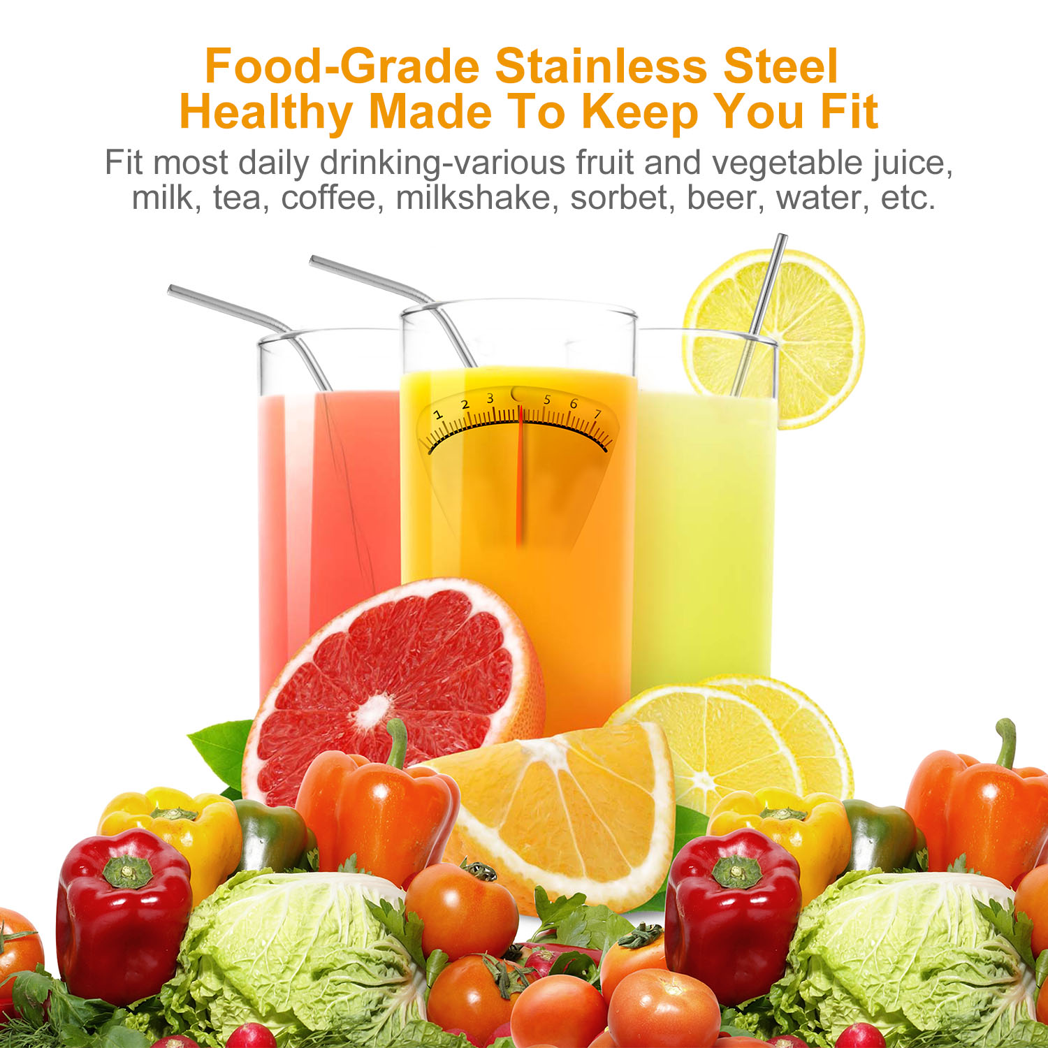 Say goodbye to unhealthy plastic drinking straw. Our eco-friendly and food-grade stainless steel drinking straw may interest you. It economically includes 8pcs (4pcs 8.5in straight straws and 4pcs 8.5in bent straws) to meet your needs and allow you to share delectable beverage with you families and friends freely. Additionally, the beverage residues such as fruit and vegetable juice, milk, tea, coffee, milkshake, sorbet can be removed easily with the coming handy cleaning brush.