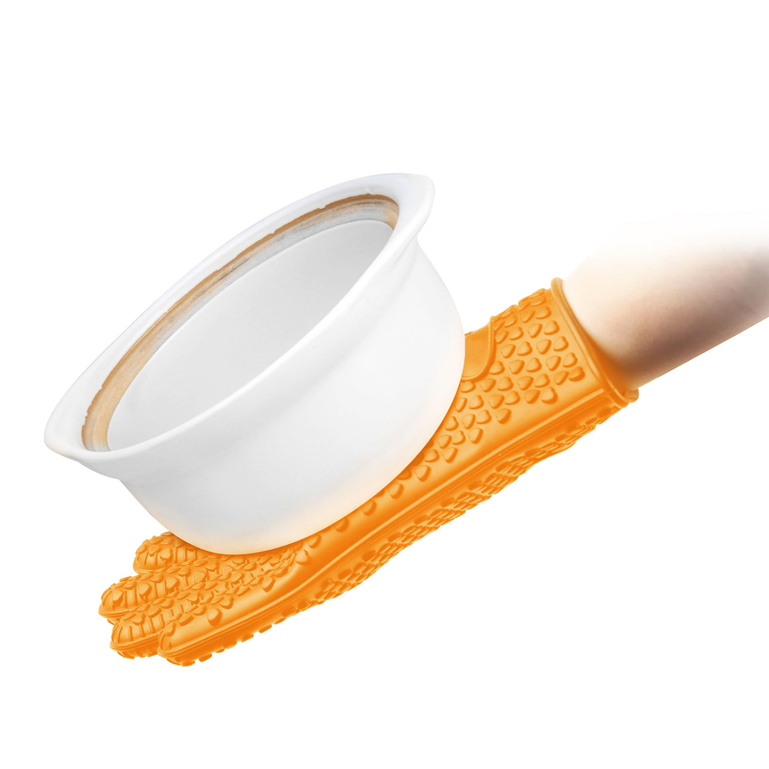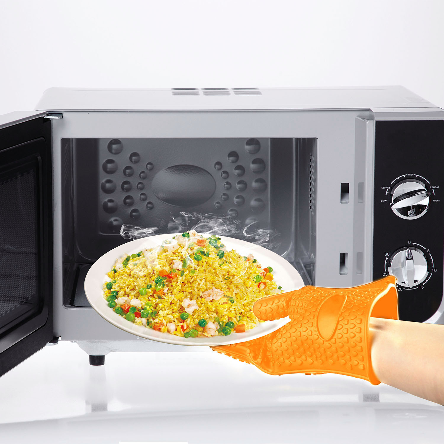 The gloves as a kitchen tool can be widely used to handle pot lids, cast iron pan handles, casseroles, cakes, cookies in the oven that effectively protects hands from heat up to 230℃/446℉. Double anti-slip design makes you much easier to get a solid grip on something hot without slipping and spilling. It is a perfect complement to any grilling and kitchenware. Make it yours now and leave your guests speechless, impressing them with your cooking skills.