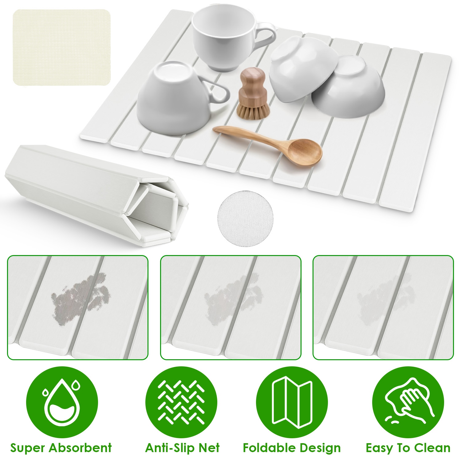 Foldable Stone Dish Drying Mats Home Dish Quick Drying Stone Pad Super Absorbent Diatomaceous Earth Draining Mat with Anti-Slip Net Sanding Pad for Di