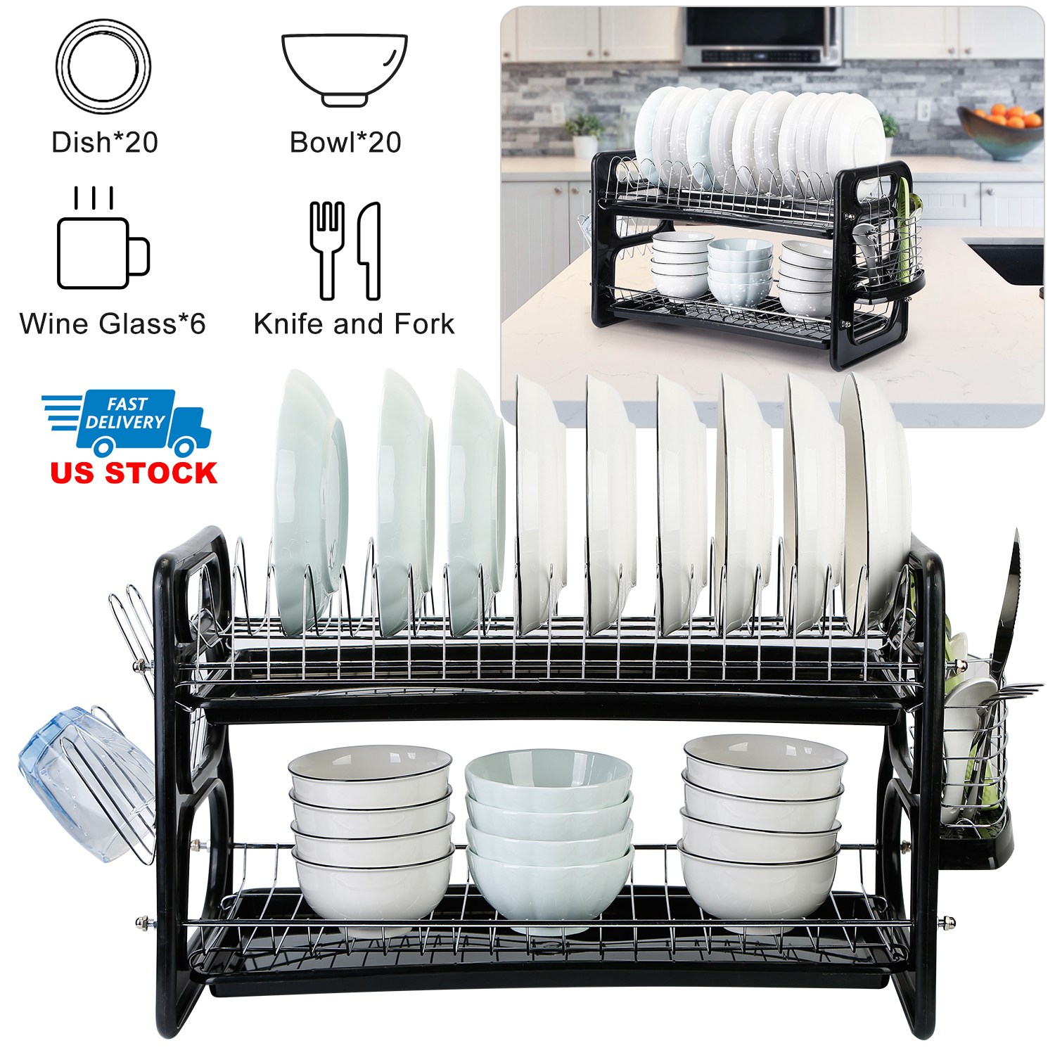 Home > 2 Tier Iron Dish Drying Rack Drainboard Set with Large Storage Anti-Rust Dish Drainer Shelf Tableware Holder Cup Holder For Kitchen Counter Storage