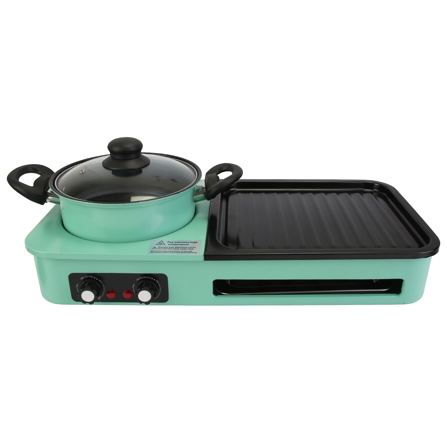 Featuring powerful 1600W heating tubes, our electric grill with hot pot ensures fast, even, and safe heating for perfectly cooked dishes every time. With separate control knobs for the hot pot and grill pan, adjusting temperatures is effortless, providing precise cooking control for your meals. Cleaning up is a breeze thanks to the innovative detachable design of the hot pot and grill pan, allowing for easy separation from the electric body and dishwasher-safe cleaning. Perfect for gatherings of 3-5 people, our electric hot pot with grill is the ideal solution for enjoying a hot pot feast, grilled delicacies, and fried favorites all at once.