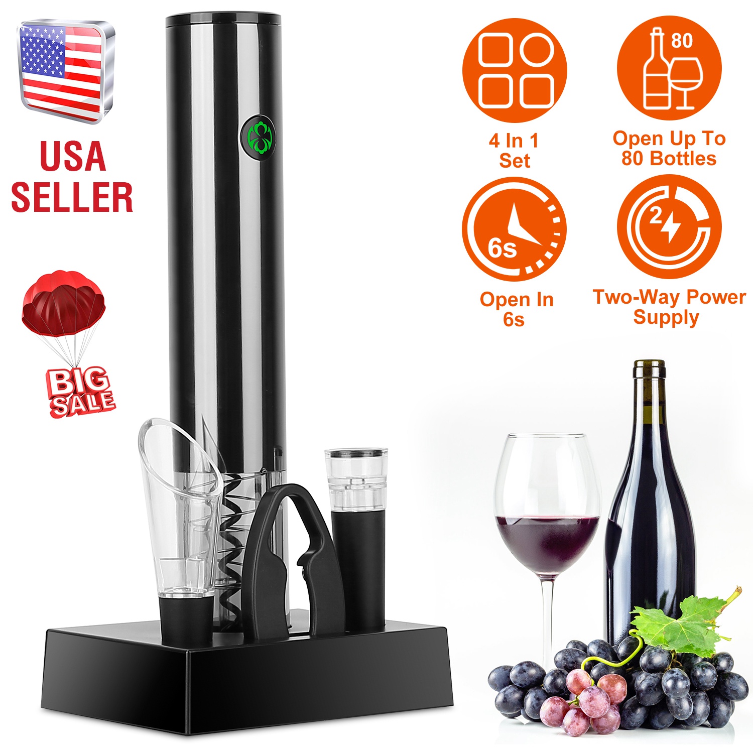 Home > 4 in 1 Electric Wine Opener Set Automatic Corkscrew Cordless Rechargeable Wine Opener w/ Pourer Foil Cutter Vacuum Stopper