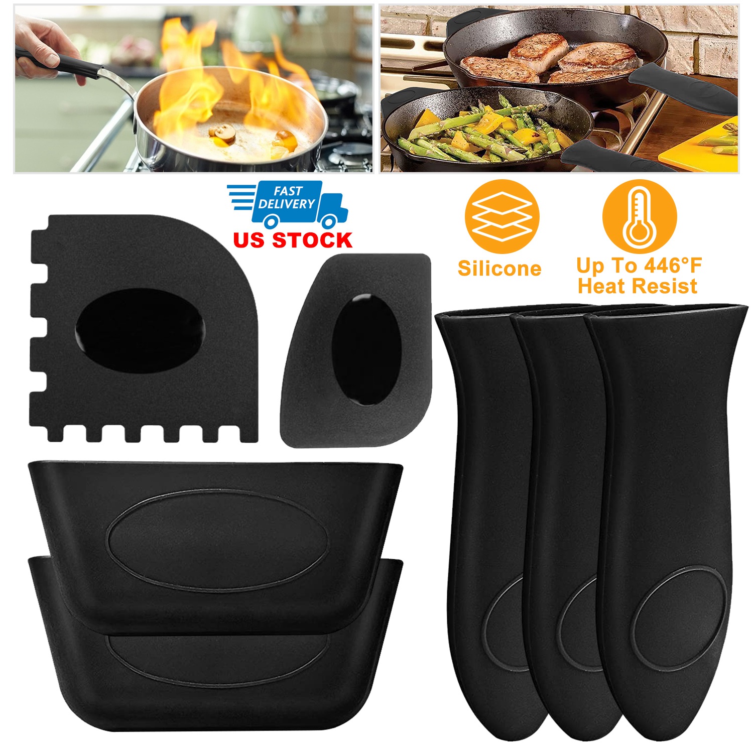 7Pcs Silicone Hot Handle Holder Non Slip Pot Handle Cover Sleeve Heat Resistant Potholder For Cast Iron Skillets Frying Pans Aluminum Cookware Handles