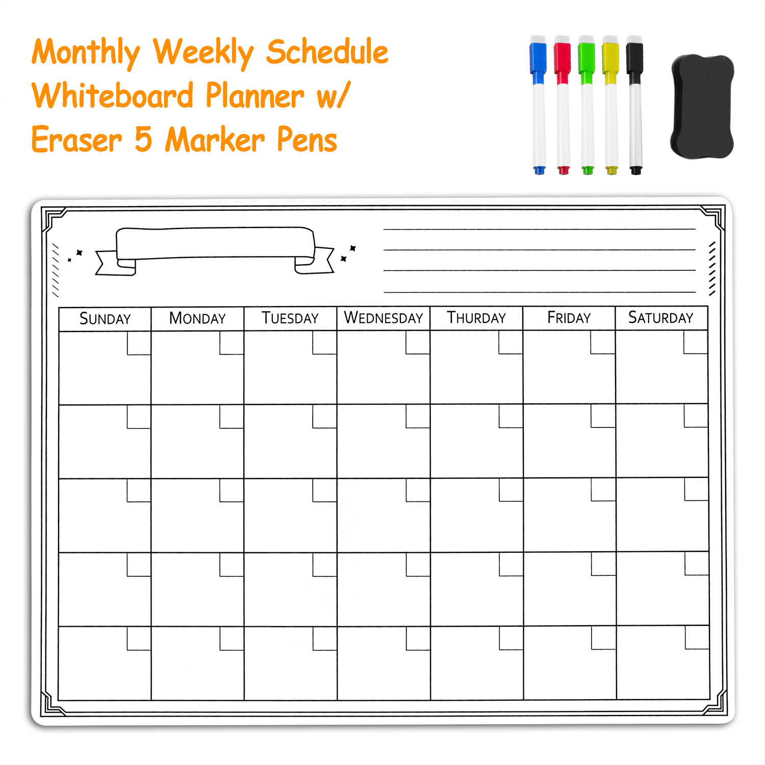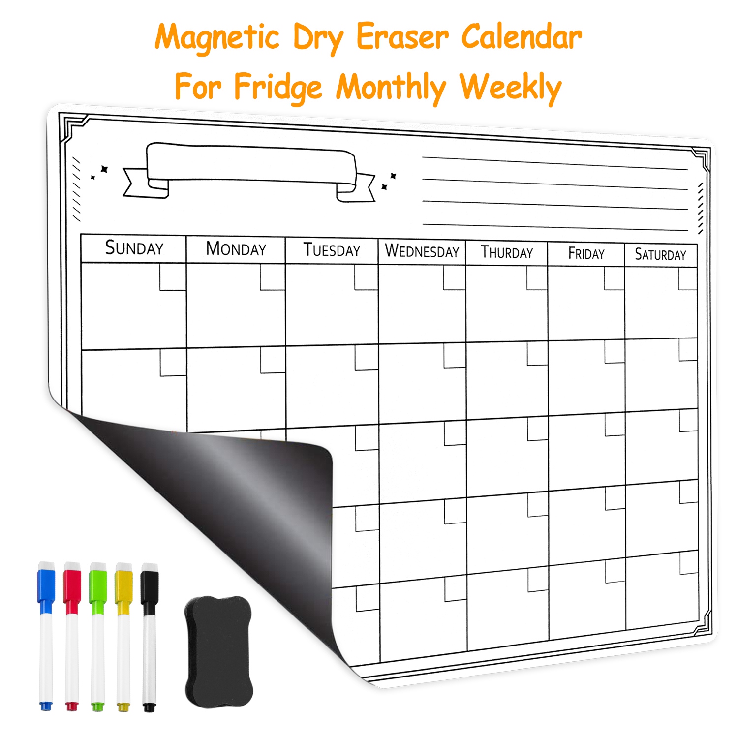 Magnetic Dry Eraser Calendar For Fridge Monthly Weekly Schedule Whiteboard Planner w/ Eraser 5 Marker Pens