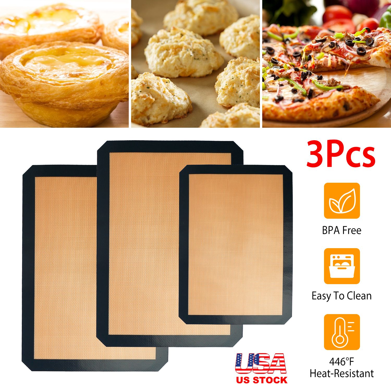 3Pcs Silicone Baking Mats Non-stick Reusable Baking Sheets Heat Resistant BPA Free Baking Mat For Cookies Pastry Bread Bun Fondant