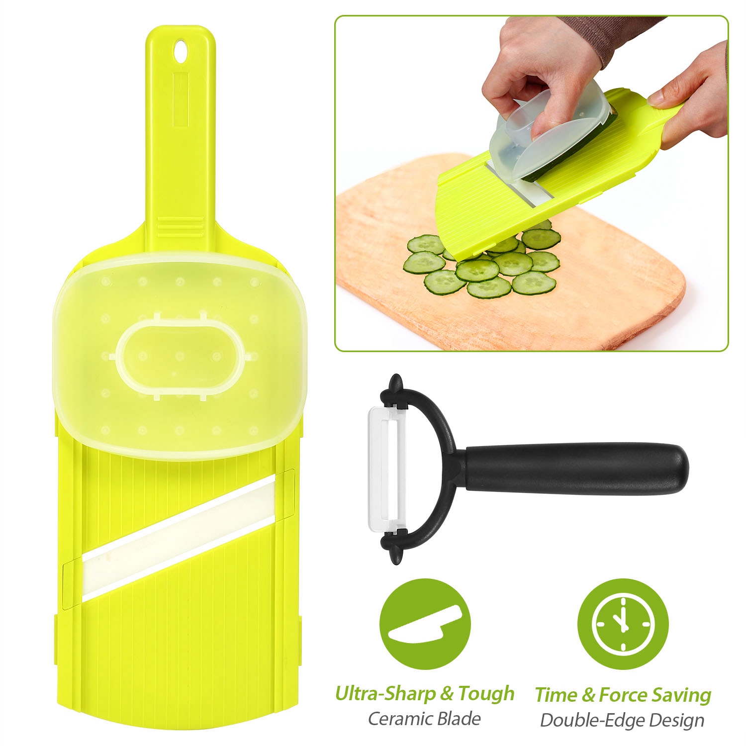 Mandolin Slicer Double-edged Ceramic Vegetable Slicer w/ Bonus Hand Guard Ceramic Peeler