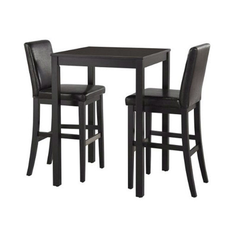 This Counter Height Pub Bar Dining Table in Black Wood Finish is perfect for casual dining and lots of other activities. This charming and functional table is durably constructed of hardwood solids and engineered wood. With its compact shape, it's ideal for smaller kitchens, apartments, and other spaces. It seats two people comfortably around its square tabletop, which is supported by sleek, sturdy legs. The table's sanded worn edges and distressed black finish enhance its casual yet elegant style. It's perfect for dining, working, studying, playing board games, enjoying coffee, reading the paper, and so much more.