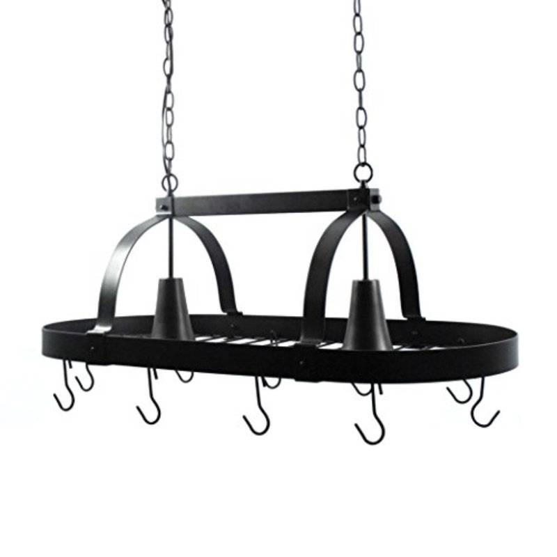 Your pots and kitchen utensils will be easily accessible with this stylish Rustic 2 Light Bronze 10 Hook Ceiling Mounted Hanging Pot Rack. Doubling as pot storage and task lighting. Comes finished in a clean oil rubbed bronze, this traditionally-designed piece will add an industrial look to your cooking space. This fixture requires two 60-Watt Type A standard medium base incandescent bulbs that are not included.